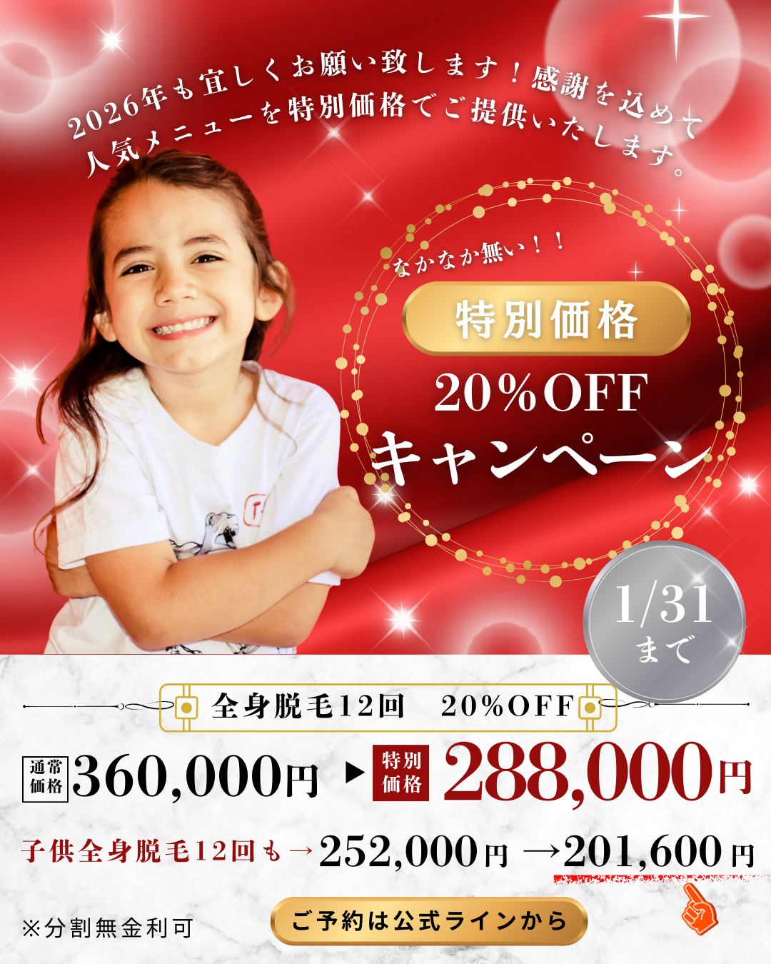 - 2011.02.12子供脱毛コースが最大75%OFFになりました